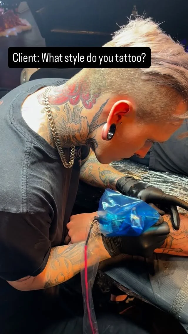 Mason grew up in Southern Colorado and has been tattooing for 7 years. He enjoys working with anything colorful and bold. Trained in American Traditional styles of tattooing, Mason has grown to like working with multiple different styles, including but not limited to Japanese, Neo-traditional, and Anime to name a few. While he is not tattooing, he enjoys making other various forms of art, playing music, skateboarding, and spending time with his loved ones. Mason usually books about a month out and has regular opening for walk in opportunities.